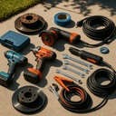 - Specialty automotive tools (brake caliper wind-back tool, oil filter wrench, spark plug socket)